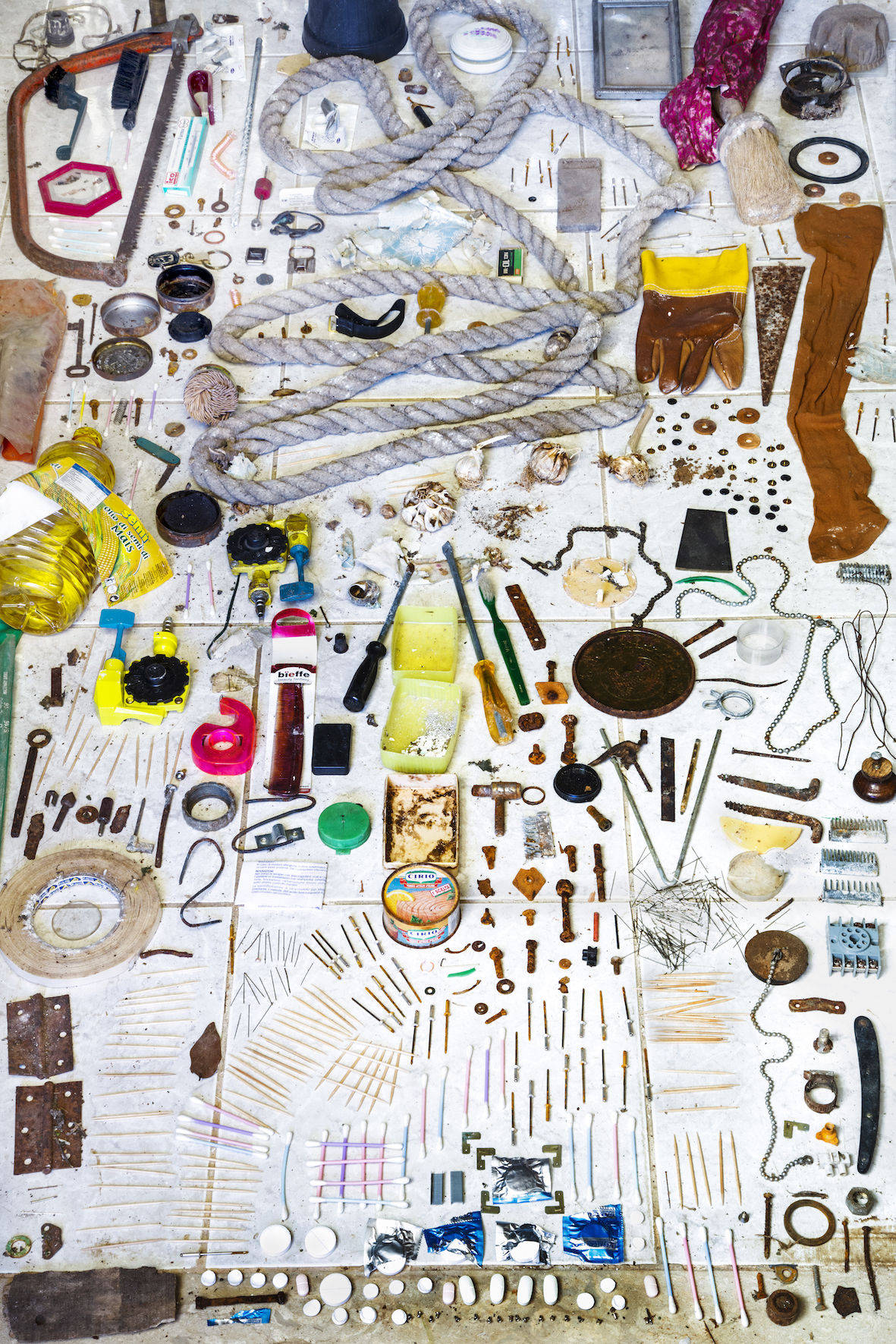 Nina: A lot of the work was photographed during a residency in Italy hosted through Cultural Documents, which is actually an Argyll and Italy-based cultural organisation. The residency is hosted close to Naples, and in Naples, you have Pompei, which most people know about, but you also have a town called Herculaneum which was buried in the same eruption. The difference was that it wasn't buried in ashes, so people weren't incinerated, but it was buried in clay and mud. So that made everything very conserved so you could see a lot of things. When we went to Herculaneum, we had a guide, and when we were in the bakery, the guide told us that when they had excavated the bakery, they had found a little child huddling with bread under the table. You could even still read the insignia on the bread because, in those days, people would make their bread at home, but they didn't bake it at home, they baked it at the bakery, so there were these communal outlets and every family would have their own stamp on their bread to show which house the bread came from.